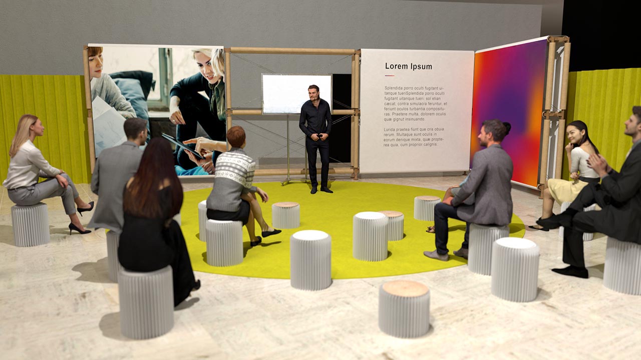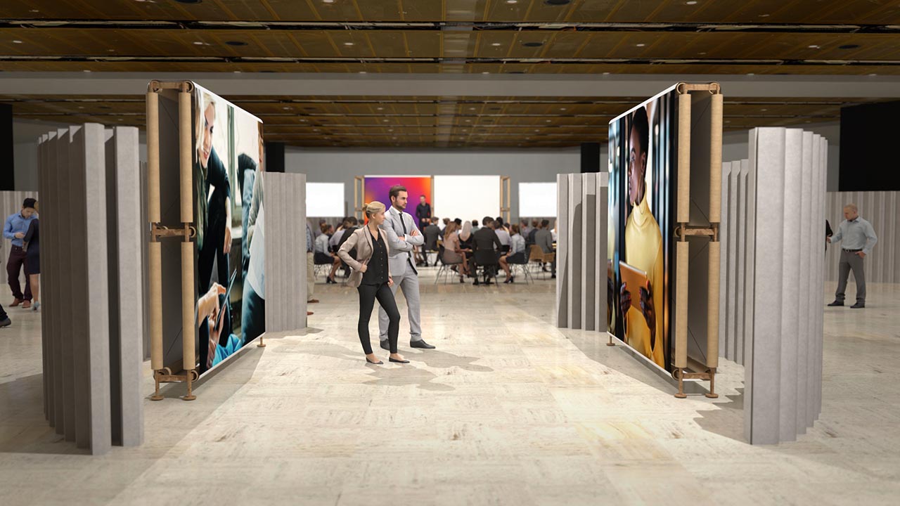 Dans ce cadre, j’utilise la scénographie comme un outil stratégique autant qu’un vecteur sensible : elle structure le message autant qu’elle en incarne l’esprit.